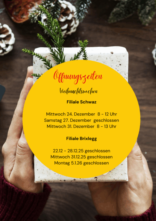 Frohe Weihnachten! Bitte beachten Sie unsere geänderten Öffnungszeiten zwischen den Feiertagen. Wir freuen uns auf Ihren Besuch!