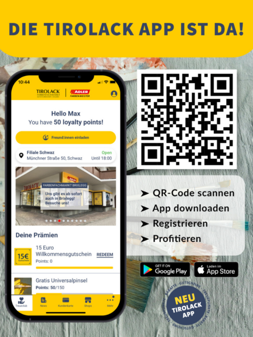 Mit der Tirolack App verpasst du nichts mehr und profitierst von exklusiven Aktionen, die es nur für App-User gibt.